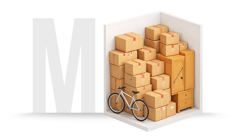 Das RatzFatzPlatz! Lager der Kategorie M hat eine Grundfläche von 3-6 m2 (Höhe 3 m). Bei dieser Lagergröße lassen sich z.B. bereits die Möbel und Gegenstände einer kleinen Wohung mit 50 m2 einlagern.